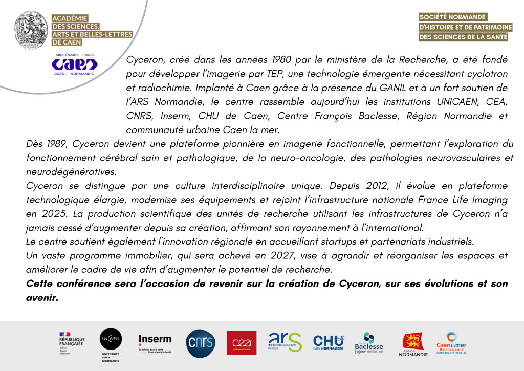 Cette conférence sera également l’occasion d’échanges enrichissants avec le public, permettant de poser des questions et de discuter des enjeux futurs de Cyceron et de la recherche en général.