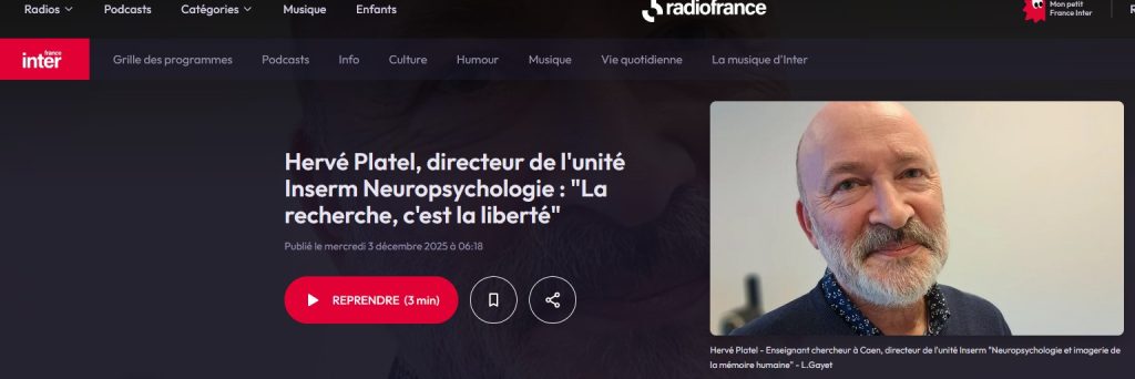 Le 3 décembre 2025, France Inter a eu le plaisir d’accueillir Hervé Platel, qui les a plongé au cœur des mystères de notre cerveau. Ses recherches fascinantes portent sur les conséquences des maladies du cerveau sur le comportement, mais aussi sur les merveilleux liens entre la musique, la peinture et notre mémoire.